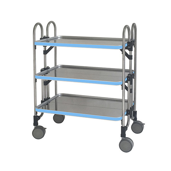 ●コンパクトな折りたたみカートです。●サイズ(mm):763×505×958●段数:3段●重量(kg):21●色:ブルー●材質:ステンレス●キャスター:Φ100mmナイロンエラストマー製(対角ストッパー付き)●折りたたみ時寸法:(幅)763×(奥行)200×(高さ)1060mm●耐荷重:30kg/段●足パイプ径:Φ19mm●タグ:院内運搬機器