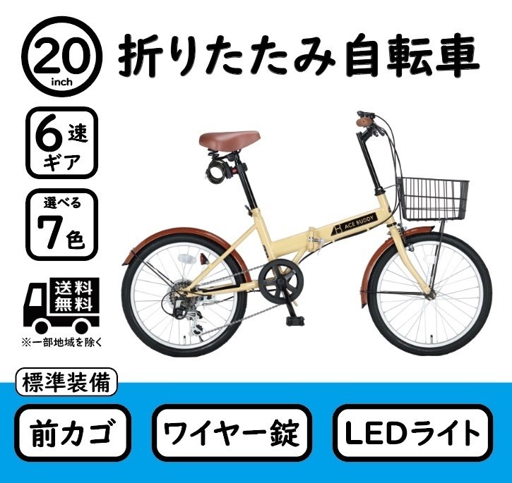 折り畳み自転車 20インチ 自転車 6段変速 カゴ・カギ・ライト付き AIT206-5【組立必要品】