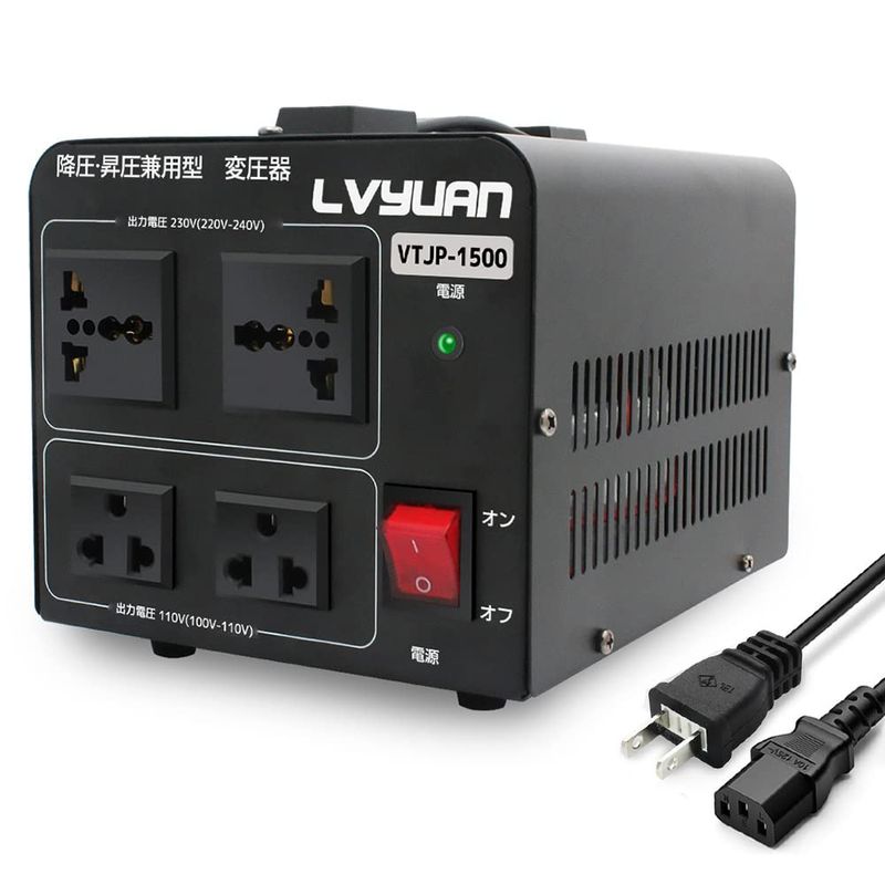 - 変圧器の容量は、使用する電化製品のモーターなどの起動電流を考慮して定格電流の2倍程度の製品選択でのご利用をお願いします。
