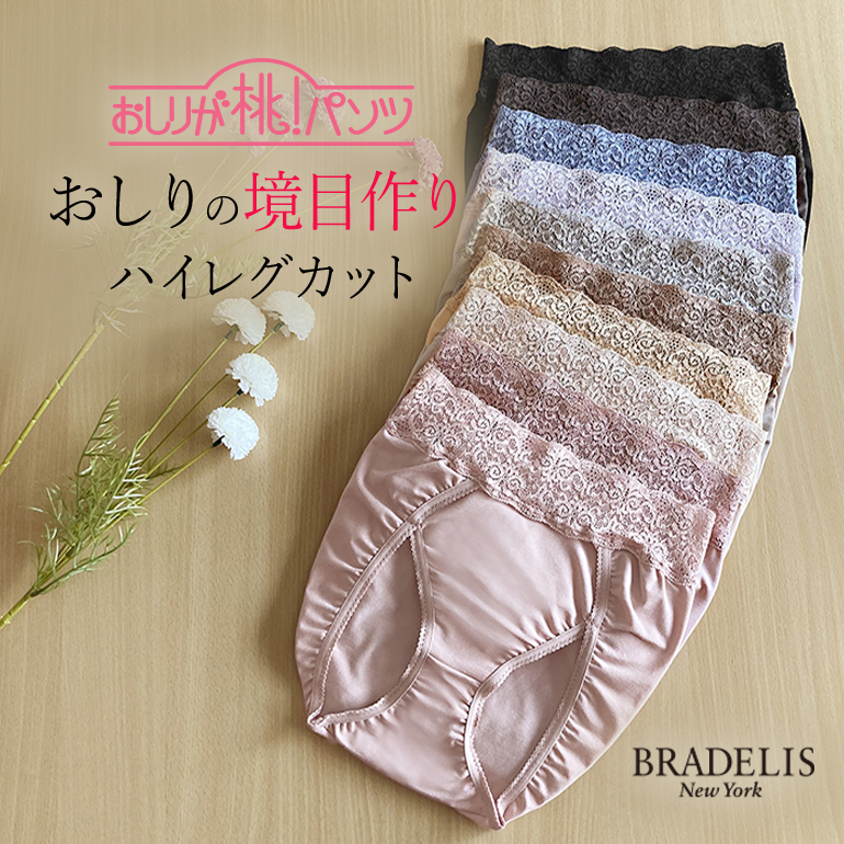 素肌に吸い付くようなフィット感が魅力の、肌に優しいナイロン綿ベア天竺を使用した、おしりが桃!シリーズのハイレグショーツです。ウエストには肌あたりの優しいストレッチレースを使用しており、ソフトな着用感で食い込みにくくウエストのくびれにフィットします。