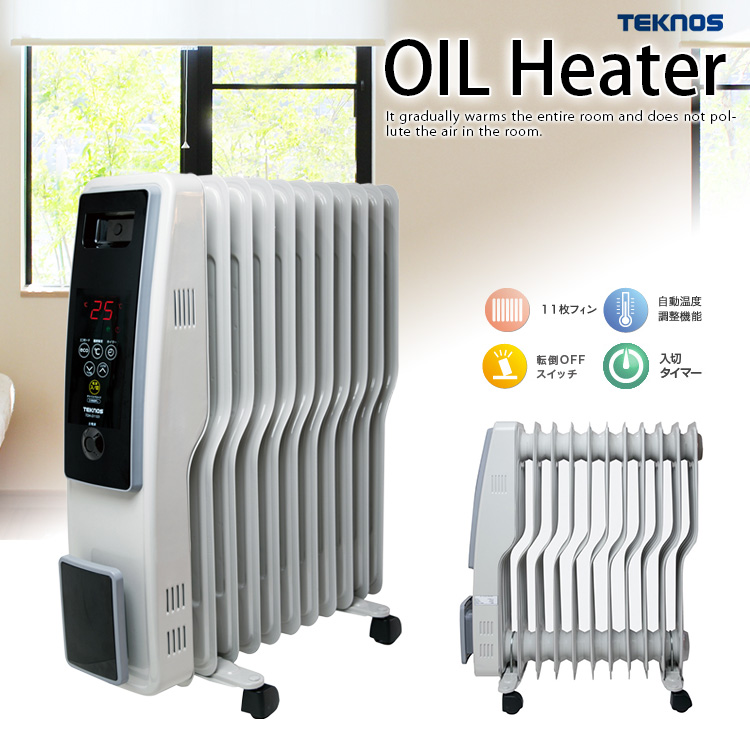 TEKNOS TOH-D1101 オイルヒーター 空気を汚さないオイルヒーター じんわり温まる S型フィン 11枚搭載