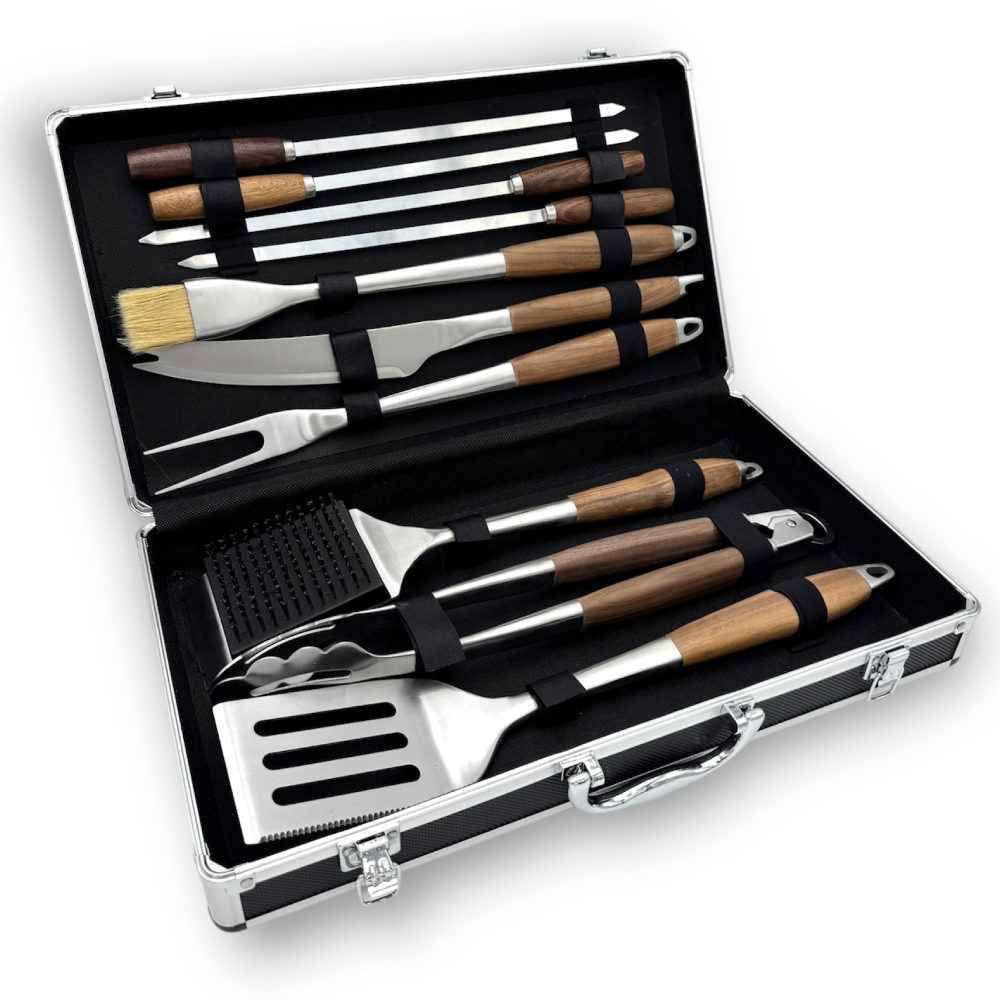 ステンレスとウォールナット製の高級BBQツール 10点セット