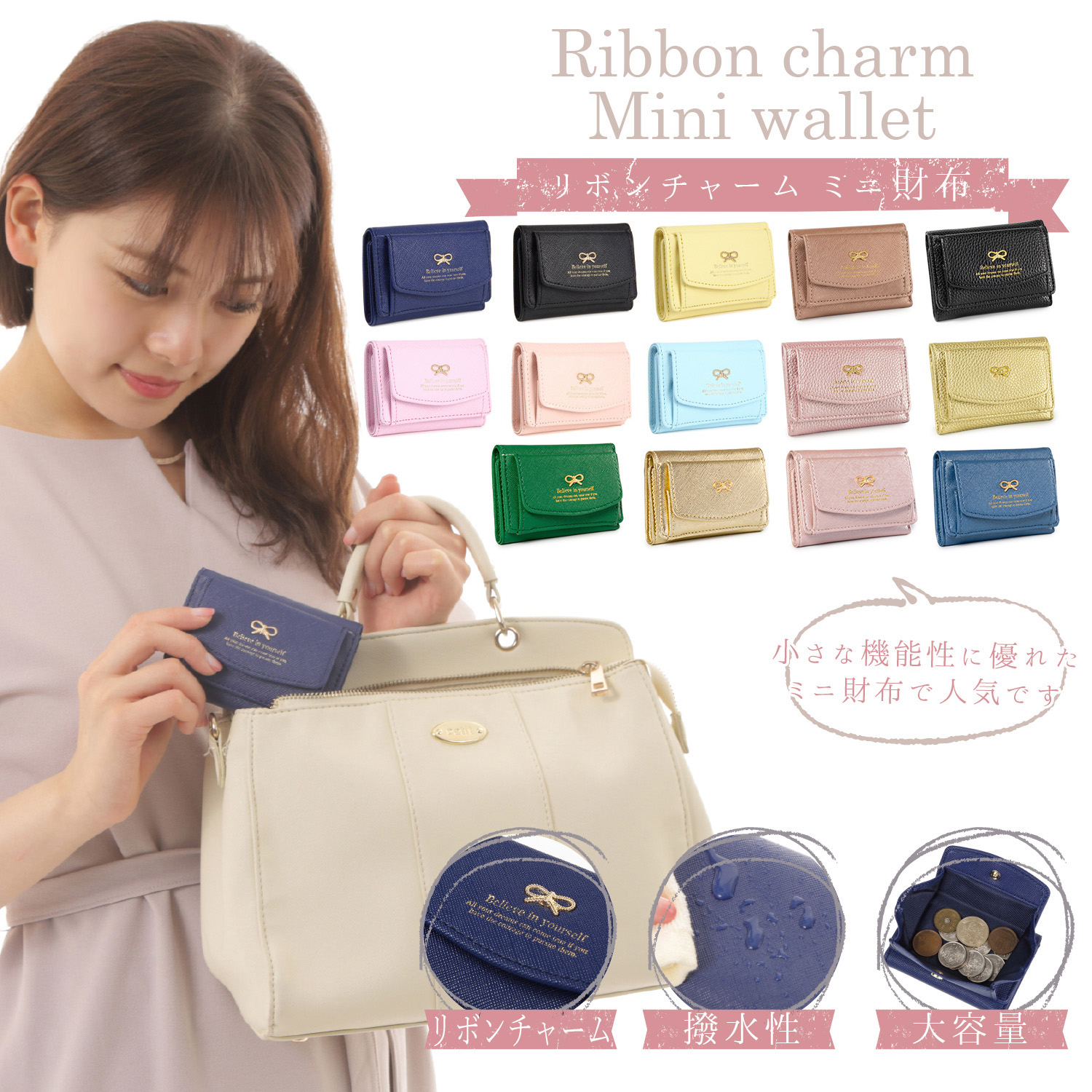 | 新品【リボンチャーム ミニ財布 コンパクト 財布 かわいい 大容量 見やすい 小銭入れ おしゃれ レディース 折りたたみ 撥水性 ミニ チャーム リボン 大人可愛い】 | |