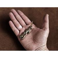 真鍮製 キーホルダー(ヒョウ)レオパード 豹 パンサー ネコ科 漢字 二重リング ブラス ネックレス アニマル グッズ ブラス ゴールド