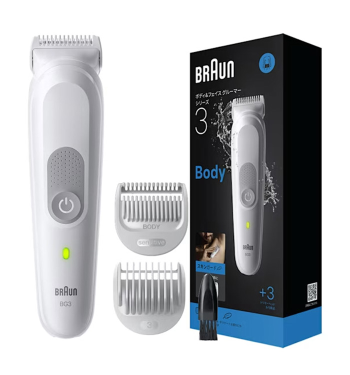 BRAUN ブラウン ボディグルーマー シリーズ3 BG3530 充電式 ホワイト 男性 男性用 メンズ 顔 顔そり ムダ毛処理 深剃り vio