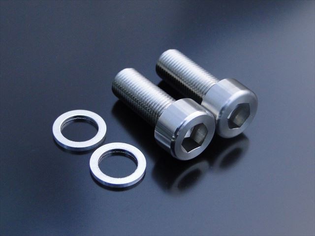 ■フロントフォークの底に付いているボルトです。六角穴が純正品は穴の深さが浅いため、なめてカラ回りする状態になります。そのため穴を純正品より1mm深くして、なめないように対策しております。