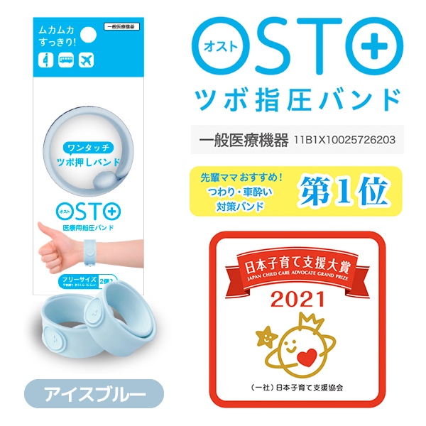 医療用ツボ指圧バンド OSTO アイスブルー 2本【一般医療管理機器】つわり・車酔い対策バンド 清潔に洗える つわり/乗り物が苦手なお子様に。