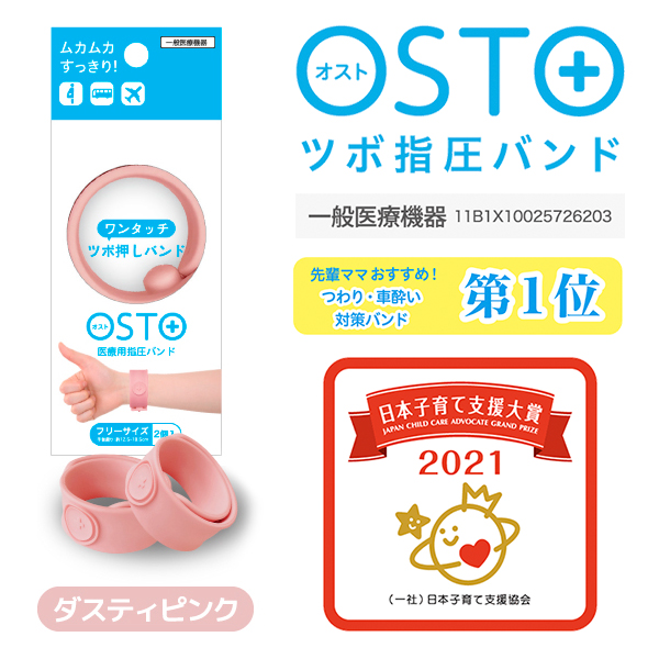 医療用ツボ指圧バンド OSTO ダスティピンク 2本【一般医療管理機器】つわり・車酔い対策バンド 清潔に洗える つわり/乗り物が苦手なお子様に。