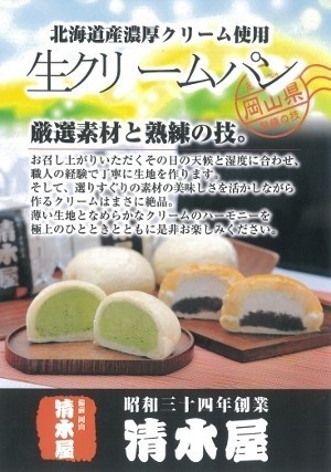 ヒルナンデス等、メデイアで多数取り上げられた、地元岡山の清水屋生クリームパンです。
