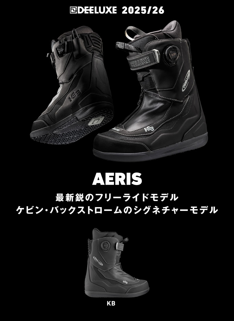 | コメント | ケビン・バックストロムは、独自のビジョンを武器に、目に見えるものすべてを貪欲に吸収し、同時に圧倒的なスタイルを放ちます。 究極のオールテレーンブーツ、そして彼のニーズを真に満たすブーツを創り出すという目標を掲げ、私たちはケビンと共にコレクションから数多くのブーツをテストし、彼のお気に入りの機能を特定しました。 卓越したボードフィーリングを実現するために、Aerisには実績のあるQuantumソールを採用しています。このソールは、特にダイレクトでレスポンスに優れた乗り心地を提供すると同時に、振動を抑制し衝撃エネルギーを吸収する効果的なクッション性も備えています。 ブーツのSidekick Proテクノロジーは、高周波溶接プロセスを用いて、ブーツのシェルに横方向と内側の補強要素を融合させています。これにより、エッジからエッジへの切り替えが速くなり、オーリー時の反発力が向上します。 ダブルバックは、バインディングによる摩耗から足を保護し、コントロールと精度を向上させます。 最新世代のAerisには、ブーツの下部を雪、氷、湿気から守り、足をドライに保つスノーシールドが搭載されています。 Aerisで、可能性を改めて考え、山へのアプローチを変革しましょう。 インナーの代名詞ともなった「サーモインナー」と呼ばれる熱成型インナーを武器に、幅広いスノーボーダーに人気のオーストリアのスノーボードブーツ専門ブランドDEELUXE。 ※こちらはSTAGE3 LINER(熱成型可能なサーモインナー)となり、成型なしでも使用可能ですが熱成型加工を行うと加工前より大きくフィット感が向上します。フィット感を向上されたい方で熱成型をお考えの方はご購入前に持ち込み成型可能ショップをご確認ください。 当店ブレイクアウトでも熱成型受け付けております。 ブーツとバインディングの相性やフィッティング、サイズ感に関して等、ご不明な点があればお気軽にお問い合わせください。サイズ交換も当店在庫有りの範囲で対応可能ですので、詳しくはサイズ交換リンクをご確認下さい。 |