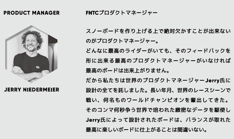 | 滑走適正スタイル | 1.グラトリ(グランドトリック) 2.ジブトリック(BOX&レール) 3.フリーラン 4.ワンメイク(キッカー) (スタイルや技術によって変化します) |