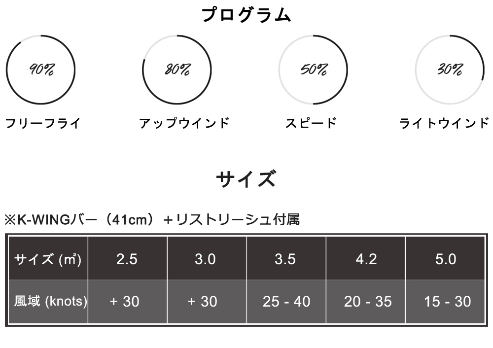 ・ダウンウインド&フリーフライト性能に特化した最強ギア ・驚くほど簡単な操作性 ・ウイングに匹敵する素晴らしいアップウインド性能 ・空中での抜群の安定感 ・前方への強い推進力と、唯一無二のグライド感覚 ・幅広いコンディション・用途に対応 ・強化された安全性と、シンプルなセットアップ