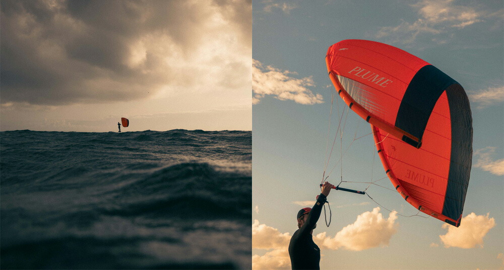 最新のイノベーション「PLUME(プルーム)」は、カイトとウィングを融合させたハイブリッドモデル。 自由なフリーフライト性能と、極上のダウンウインド感覚を実現する一品だ。