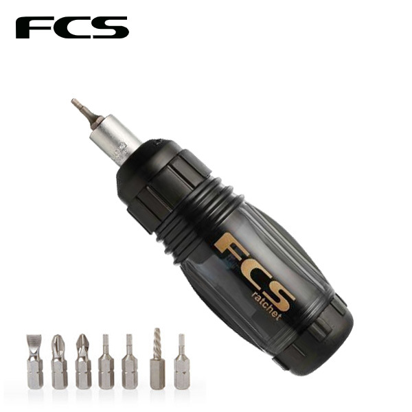 FCSラチェットツールには3つのヘッド回転オプションがあり、最小限の時間で簡単にフィンスクリューを緩めて締めることができます。これは究極のサーフィンアクセサリーです。7つのステンレススチールのビットアタッチメントが付属しています