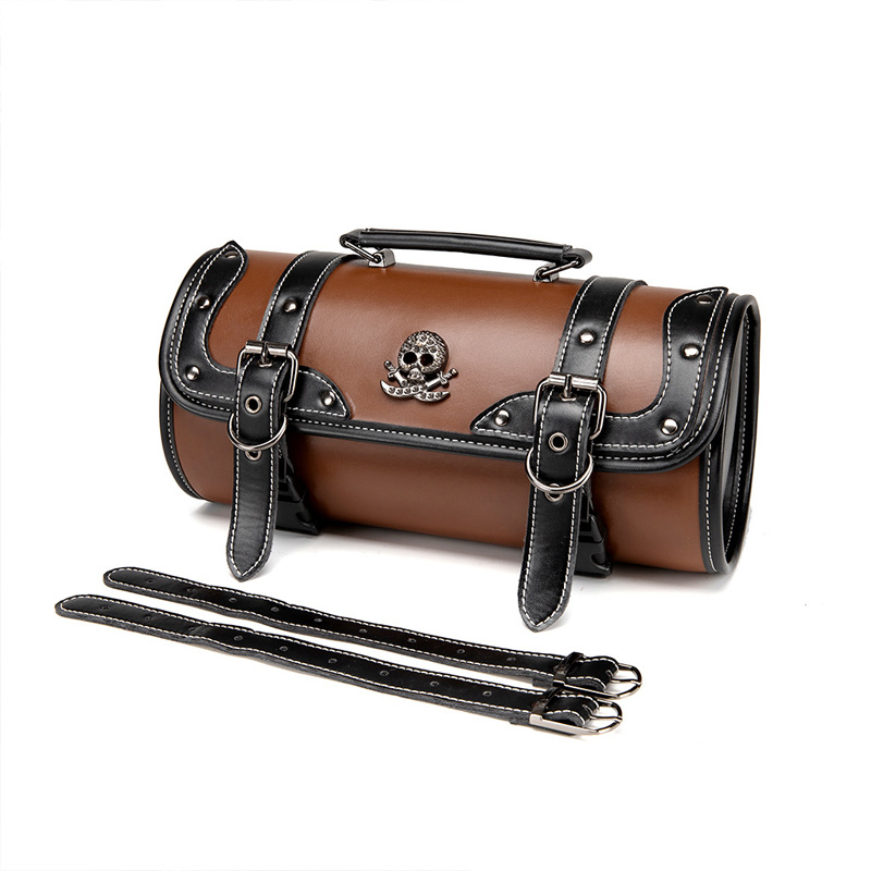 ツールバッグ オートバイ バイクバッグ 筒形 サドルバッグ ベルト付き バイカーバッグ スカル パンク 髑髏 ツーリング サイクリング