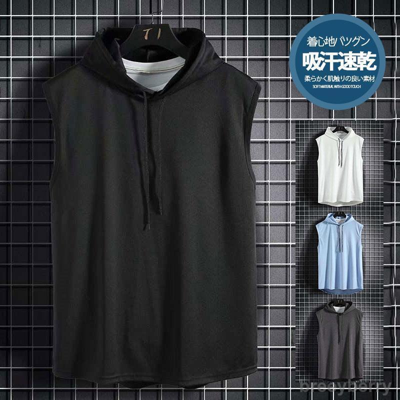 タンク ノースリーブ メンズ tシャツ 夏 夏服 吸汗速乾 パーカー 薄手 サマーウェア フード付き トレーナー インナー スポーツ 春