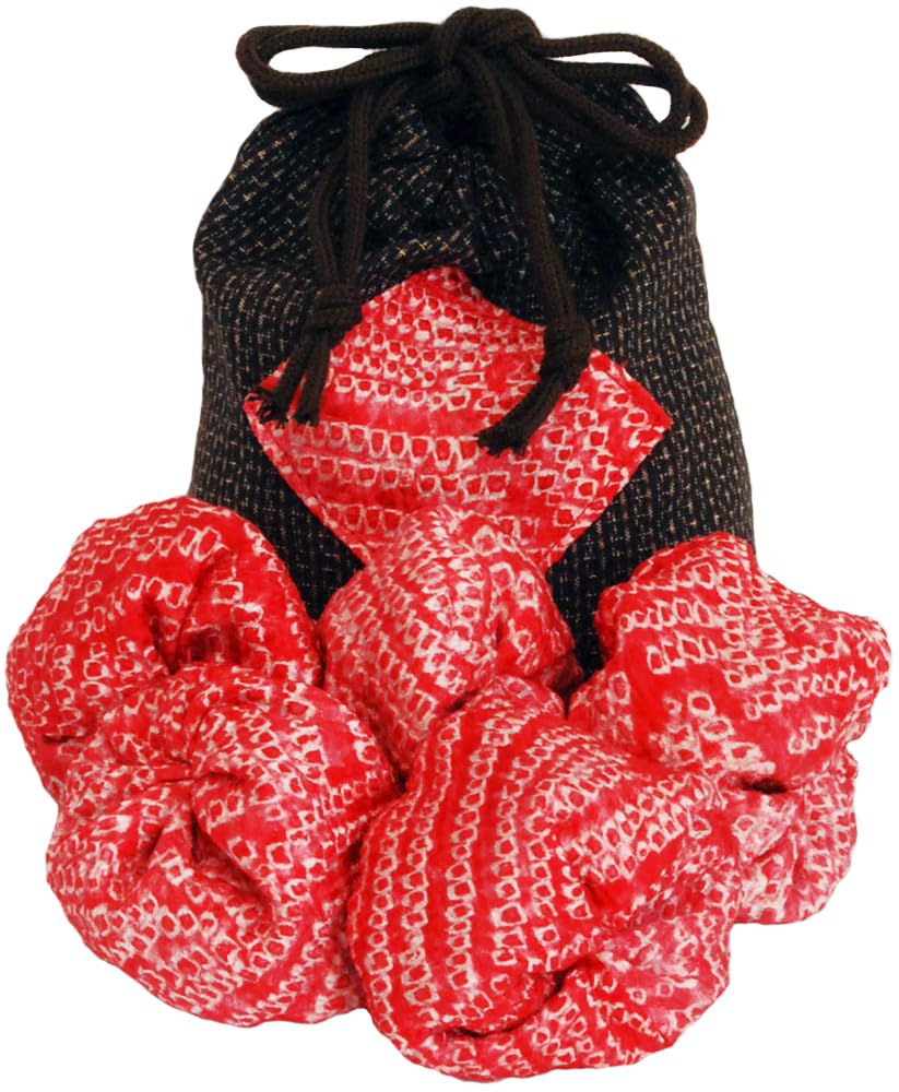 あずき正絹絞りお手玉大島紬巾着袋入り(A色)