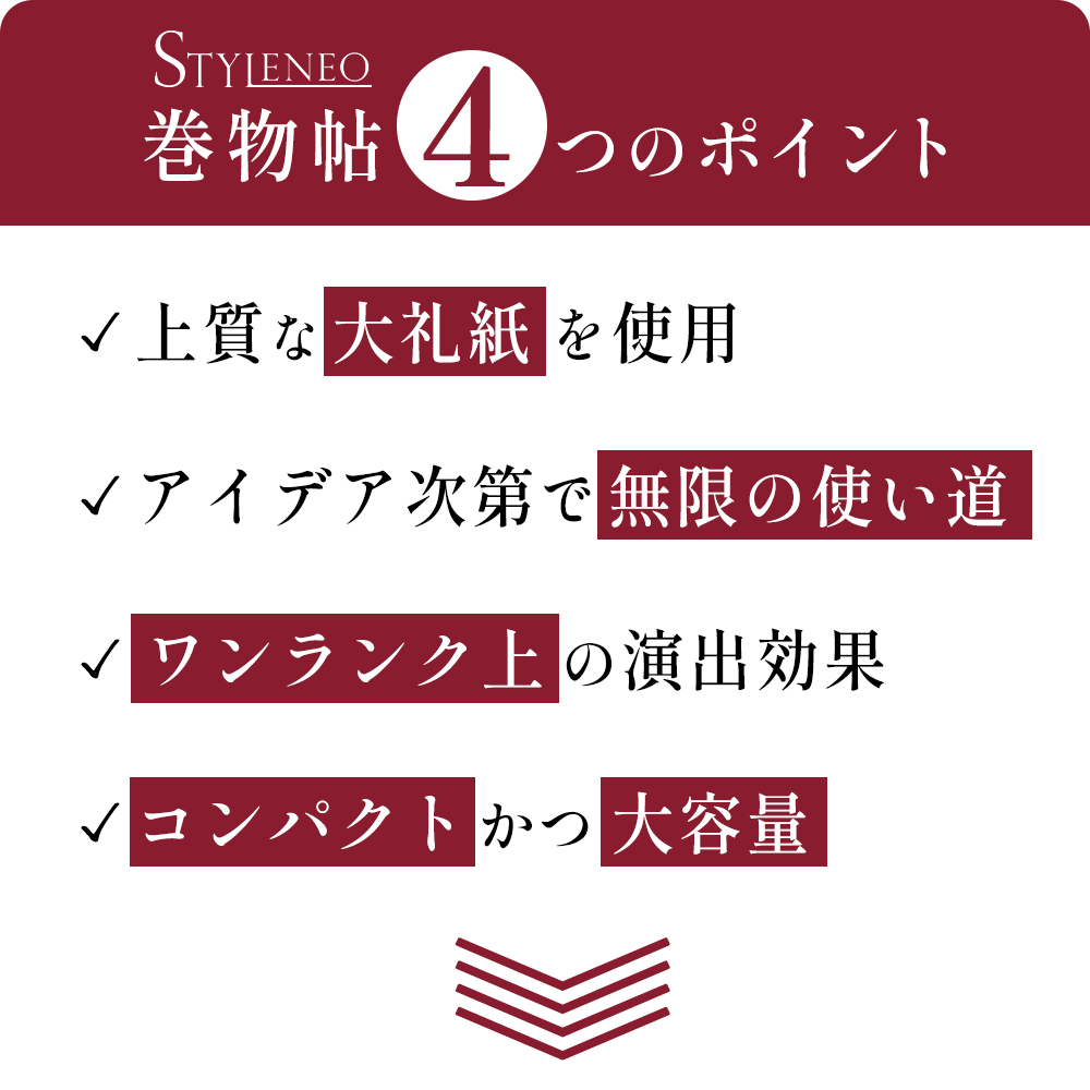 | 3. ワンランク上の演出 巻物を広げる動作がドラマを生み、特別感を演出。 |