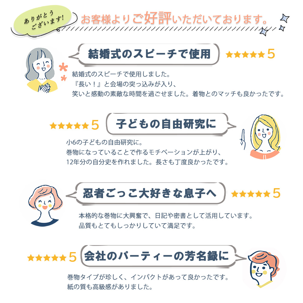 | ★5 「子どもの自由研究に。巻物でモチベーションが上がり、12年分の自分史を作れました。」 |