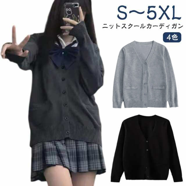 | 【スクールカーディガン】【S〜5XL】【4色】 シンプルなデザインで制服にも合わせやすいスクールカーディガン。 通学でも私服でも使えるカーディガン。 首元を綺麗に見せるVゾーンと、程よくゆとりを持たせたシルエットが清楚さを演出! 肌寒くなってきたこらからの季節には欠かさないアイテムです! 無地でシンプルなデザインなので、普段はもちろん色々なシーンで着用できるカーディガン! ※作りは小さめなので、通常より 1サイズ〜2サイズ上がおすすめです。 | |