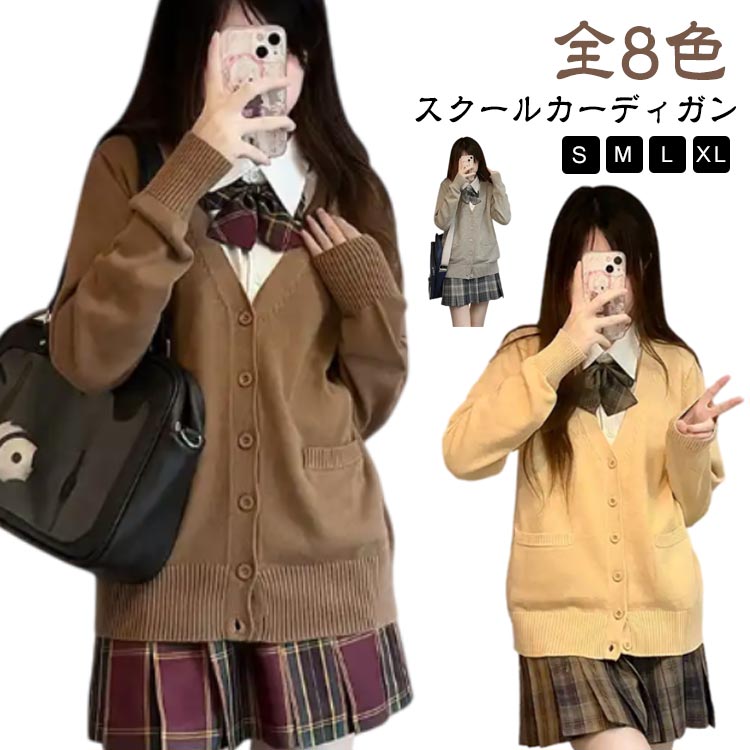 | 【全8色】【スクールカーディガン】【S M L XL】 通学でも私服でも使えるニットカーディガン。 首元を綺麗に見せるVゾーンと、程よくゆとりを持たせたシルエットが清楚さを演出! 肌寒くなってきたこらからの季節には欠かさないアイテムです! 無地でシンプルなデザインなので、普段はもちろん色々なシーンで着用できるカーディガン! | |