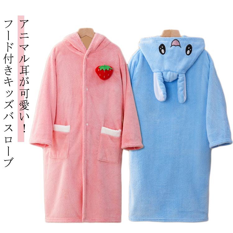 女の子 キッズ バスローブ バスローブ 男の子 ルームウェア 前開き 長袖 フード付き ポケットあり プール お風呂 ガウン 子供用