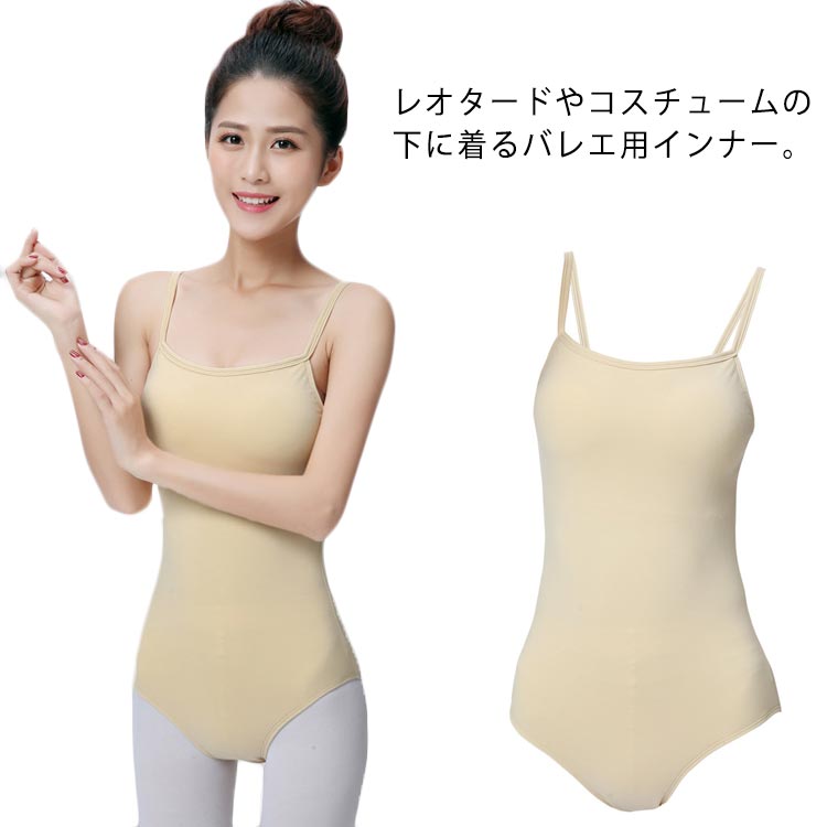 レオタードやコスチュームの下に着るバレエ用インナー。 胸・背中とも大きく開いているので、レオタードからはみ出しにくいデザインです。 さらに嬉しいバストパットを差し込めるポケット付きです♪ 伸縮性があり、ソフトな着心地の吸汗速乾素材を使用しています。 普段のお稽古はもちろん、発表会でも大活躍のボディファンデーションです! | |