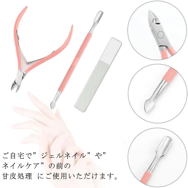 | ご自宅で”ジェルネイル”や”ネイルケア”の前の 甘皮処理 にご使用いただけます。 “あまがわ処理”をスムーズに行なって頂くために、 ネイルケアセット として「キューティクルリムーバー」や「ネイルニッパー」 「爪切り」 「爪切りニッパー」を合わせてご用意頂けますと、 爪 をケアしながら ネイル を進めることができます。 | |