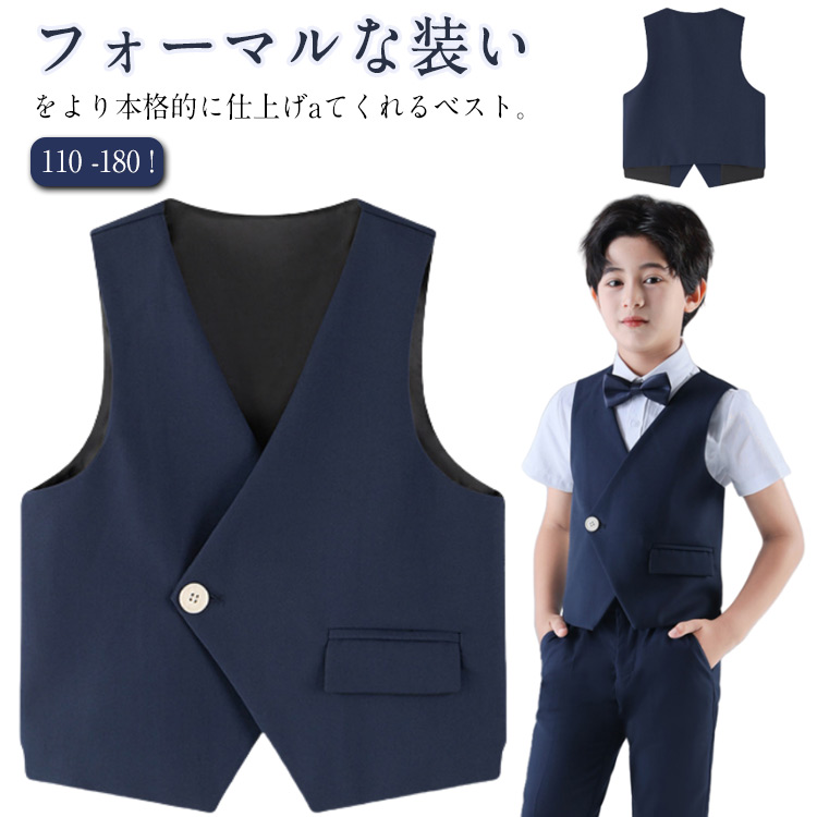 | フォーマルな装いをより本格的に仕上げてくれるベスト。 しっかりした生地で高級感があり、尚且つ柔らかく着心地の良い質感です。 通気性に優れた生地でさらっと快適。 全体的にスタイルアップ出来るオシャレな1着です。 普通着としてもお洒落で、卒入学式、発表会、冠婚葬祭など正式な場も活躍1枚です。 | |