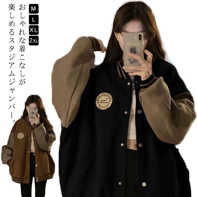 | おしゃれな着こなしが楽しめるスタジアムジャンパー。 可愛くカジュアルな印象“スナップボタン”を採用。 ゆったりシルエットなので厚手トップスの上にも楽に羽織れます。 カジュアルやストリートな着こなしはもちろん、モードなコーディネートとも相性抜群。 | |