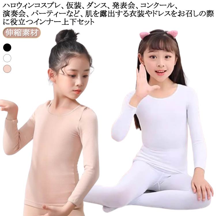 | ハロウィンコスプレ、仮装、ダンス、発表会、コンクール、演奏会、パーティーなど、肌を露出する衣装やドレスをお召しの際に役立つインナー上下セット 伸縮性のある素材で体にフィットするのに動きやすいストレスフリーな着心地。 ノースリーブをお召しの際の「二の腕のぷるぷる」や「脇下のたるみ」「肩や腕のシミ・そばかす」対策として、衣装の下に着るだけ。 チューブトップやホルターネックなど肌を露出する衣装でも安心。 つま先まですっぽりとカバーできるので、肌寒い季節の防寒対策としてもオススメ。 | |