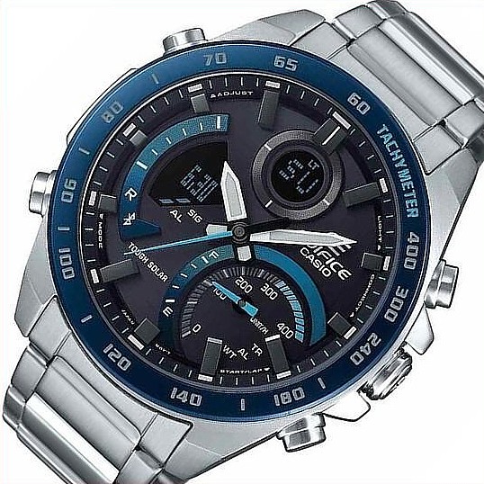 先進の高機能メタルクロノグラフとして進化を続ける「EDIFICE(エディフィス)」から、機能性とデザイン性を併せ持つデジタル・アナログコンビのNewモデルが登場します。今回のモデルは、ベゼルにタキメーターを採用。秒針などに施されたカラーリングや4時側のスピードメーターをイメージした立体インダイアルにグラデーション塗装を初採用し、よりスポーティなデザインに仕上げました。また、12時と9時側には、デジタル画面を搭載。針での指針に加えて、液晶での各種情報のわかりやすい表示を可能にしています。