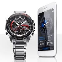 機能面では専用アプリケーション「EDIFICE Connected」※1をインストールして、対応するスマートフォンと連携することにより、時刻修正などを簡単に行うことができます。スマートフォンと連携して1日4回の時刻の自動修正が可能で、海外渡航時などにも時計のワンプッシュ操作で簡単に時刻を修正します。
