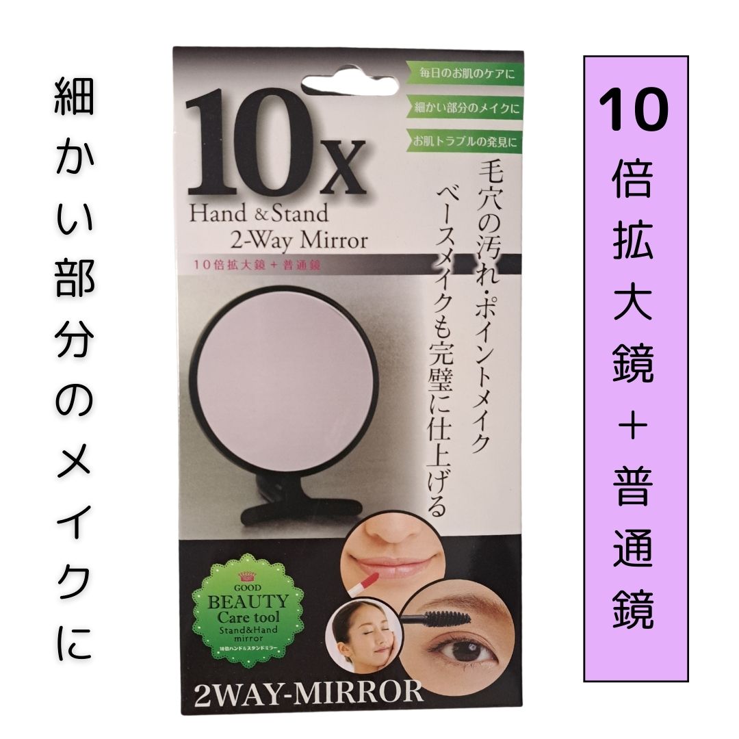 10倍拡大鏡+等倍鏡の2WAYハンドミラーです。