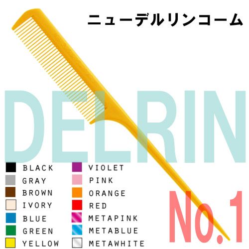送料300円/3点まで 美容師 カラフル コーム ニューデルリンコーム No.1 日本製 リングコーム テールコーム DELRIN 植原セル ワインディング オールウェーブ