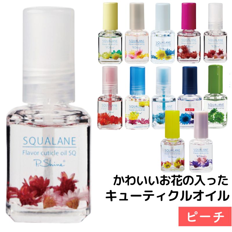 【ピーチ】 フレーバーキューティクルオイルSQ スクワラン 12mL かわいいお花入り 保湿 爪 ネイルケア ピーシャイン 全国送料無料