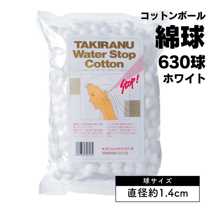 タキレーヌ ウォーターストップコットン ホワイト 白 約630球 耳栓用 丸型 脱脂綿 球状 コットンボール