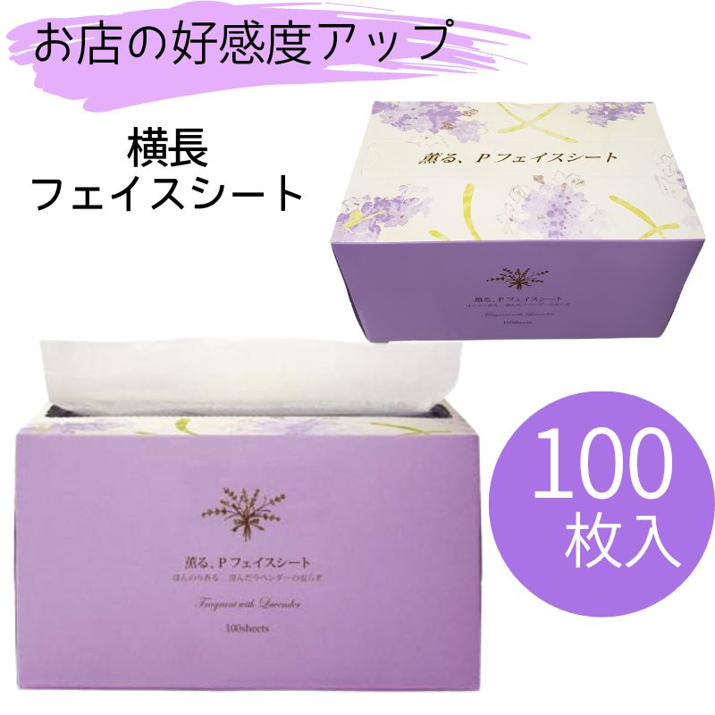 【薫る、Pフェイスシート 100枚入 白色・ヨコ折り (癒しのシャンプー用フェイスシート) ラベンダーの香り】