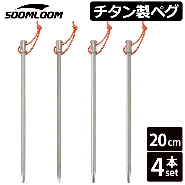 チタンペグ 4本セット 20cm Soomloom 64チタン合金 高強度 チタンペグ ソリッド テント ペグ テーク 超軽量 強靭 キャンプ設営用具 ゴムロープ付き 送料無料