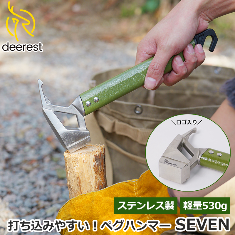 Deerest ペグハンマー キャンプハンマー ペグ打ち ペグ抜き 衝撃吸収 ヘッド テント キャンプ アウトドア 軽量 ステンレスペグハンマー SEVEN