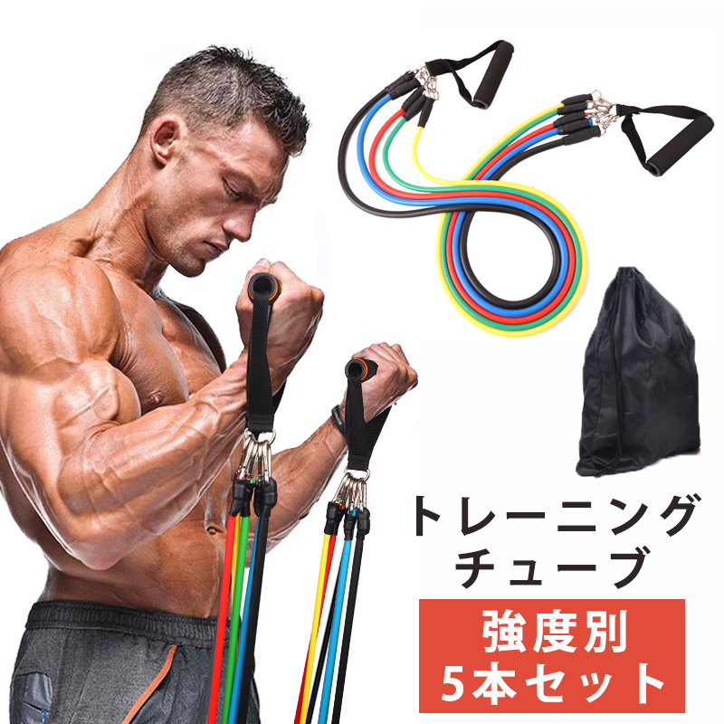 トレーニング チューブ トレーニングバンド 強度別5本セット パワーチューブ トレーニングチューブ エクササイズバンド 筋トレ ダイエット