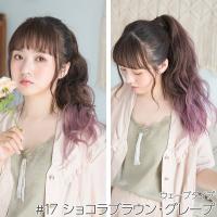 人気のポニーテールウィッグが、長さとボリュームを抑えてより扱いやすく、幅広い方に使っていただきやすくなりました。もちろんマジックテープで巻きつけるだけの簡単装着。セミロングの長さでアレンジもしやすく、巻き付ける部分も自然な仕上がりに!自然に馴染む単色4色と、境目のない自然な染色が好評のグラデーションカラー9色展開とカラバリの豊富さも魅力。ゆるカール、ウェーブの2typeから選べます。