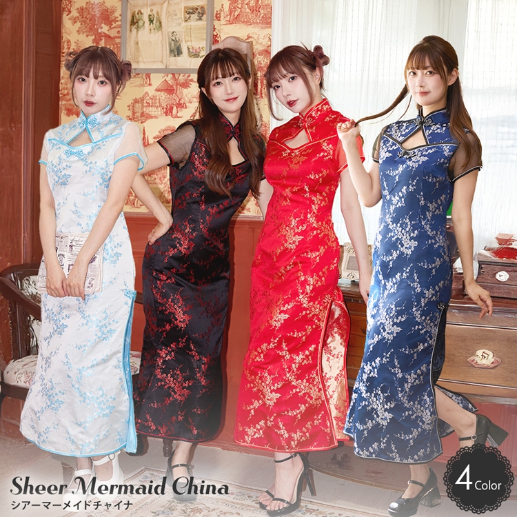 大人の女性にぴったりなエレガントチャイナ「シアーマーメイドチャイナ」は、シアー素材の袖と鎖骨まわりが美しく、セクシーでありながら露出しすぎない上品なデザインです。
