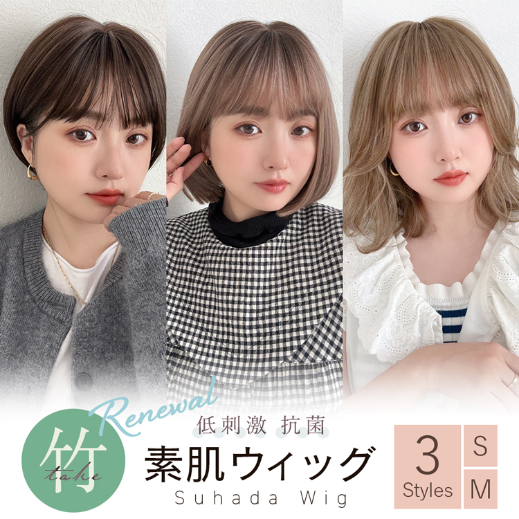 「素肌ウィッグ【竹】 ショート&ボブ&ミディアム 選べる3タイプ」