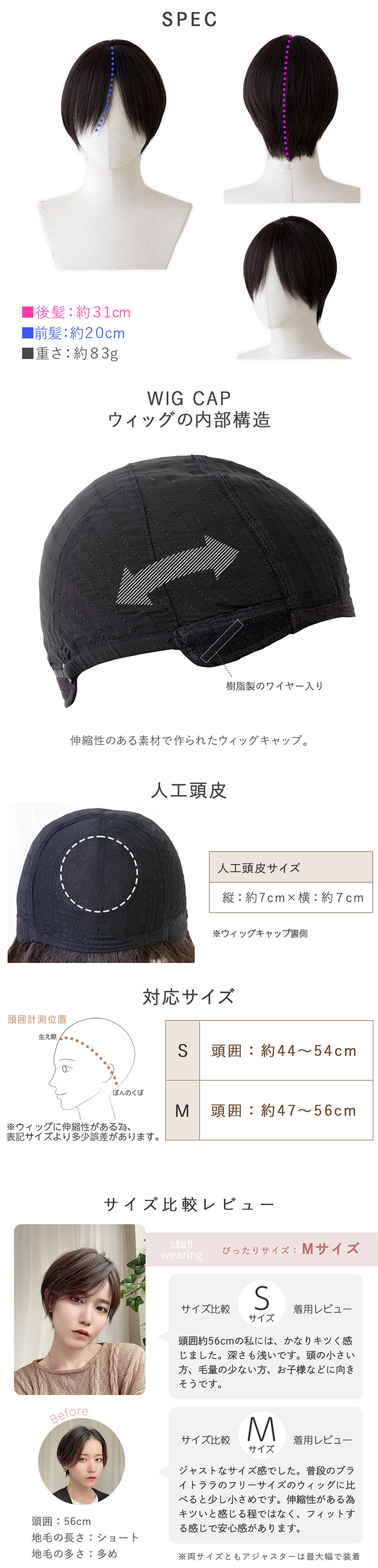 後髪:約31cm 前髪:約20cm えりあし:約4cm