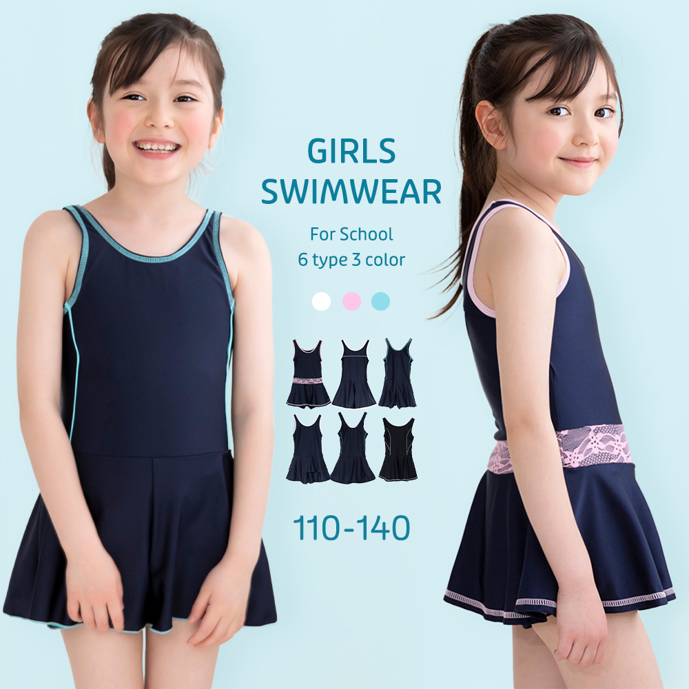 シンプルなのにしっかり可愛い、女の子用のスクールタイプ水着です。