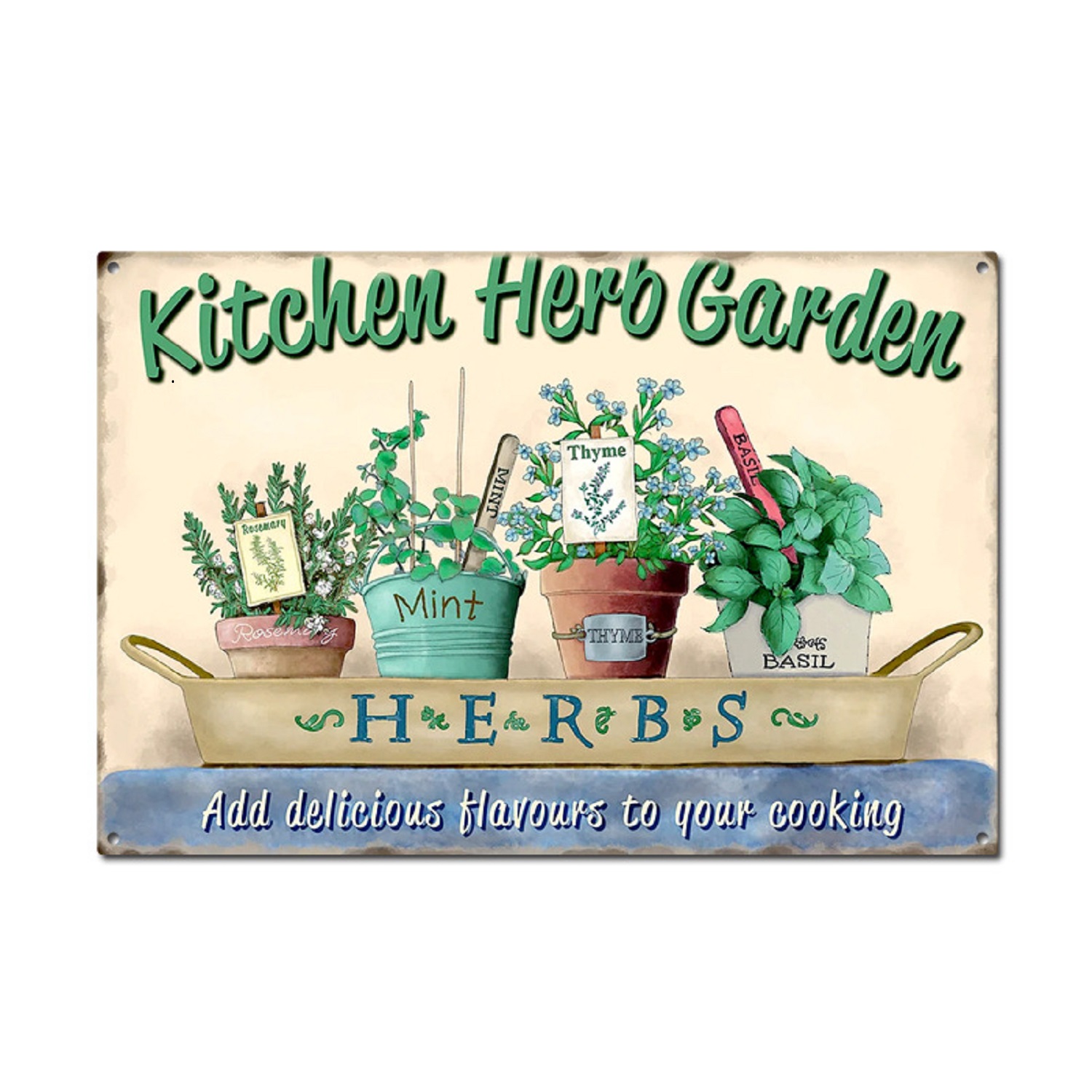 ガーデニング 雑貨 プランター プレート ブリキ 看板 パネル アンティーク インテリア 壁掛け (4Herbs)