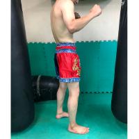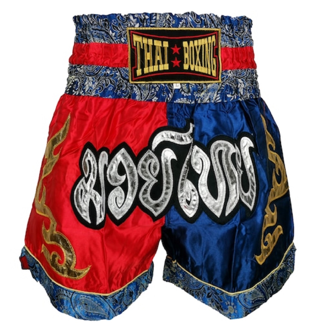 ムエタイ トランクス キックボクシング K-1 パンツ 試合 練習 プロ アマ 男女兼用 タイ製 (レッド&ネイビー)