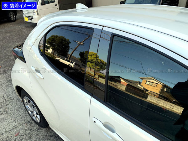 BRIGHTZ ヤリス 210 10 14 15 17 超鏡面ステンレスブラックメッキピラーパネル バイザー無用 6PC サイド ガーニッシュ カバー PIL−BLA−400