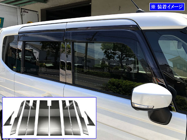 BRIGHTZ スペーシアカスタム MK54S MK94S 超鏡面ステンレスブラックメッキピラーパネル バイザー有用 12PC サイド ガーニッシュ カバー PIL−BLA−425